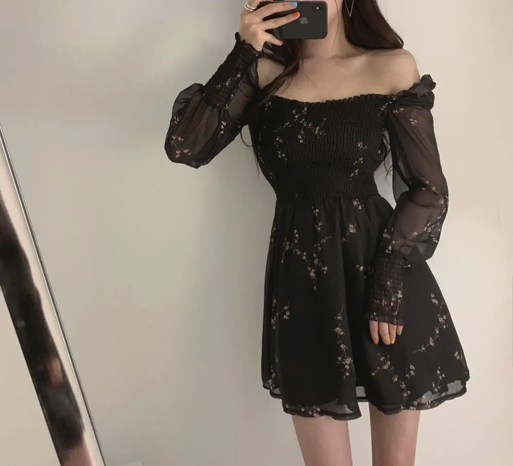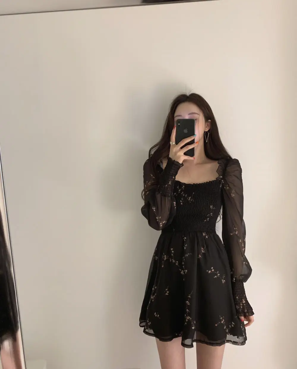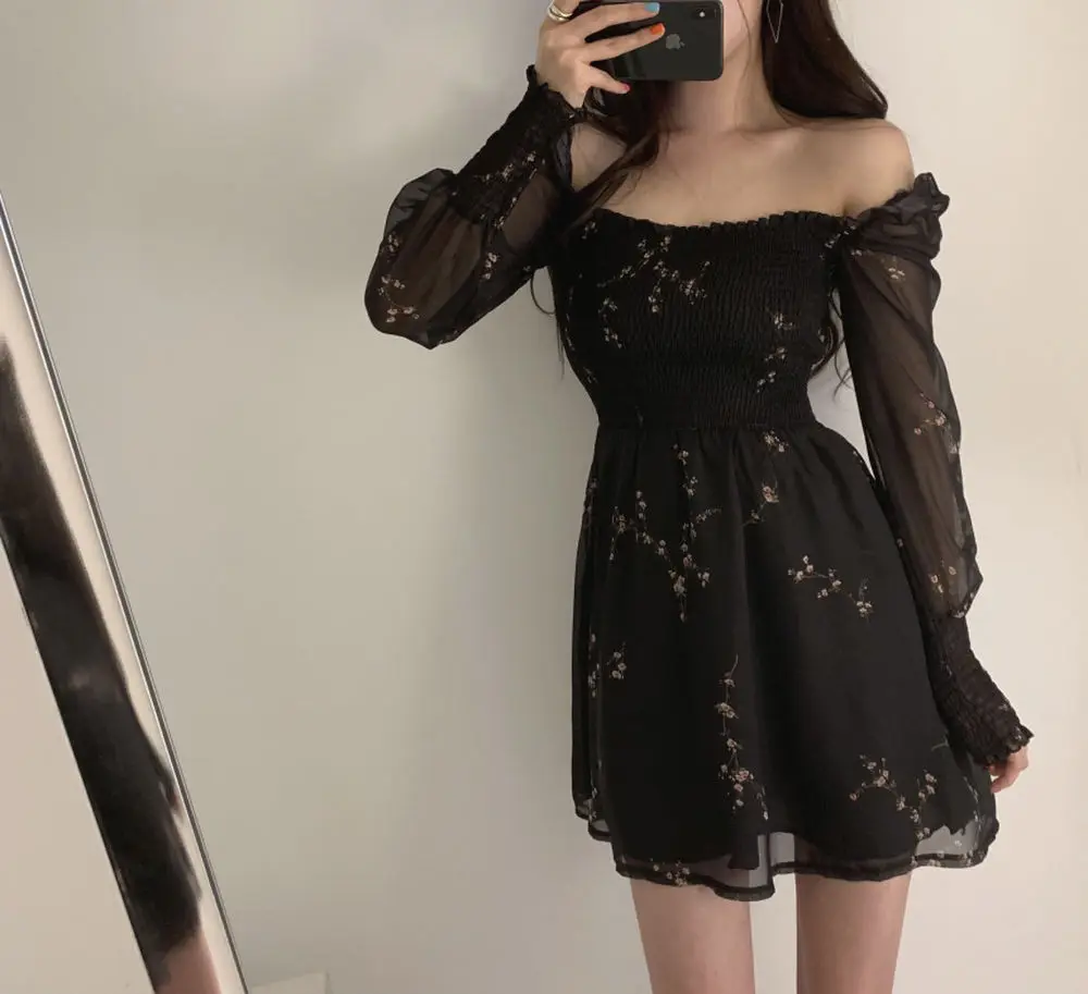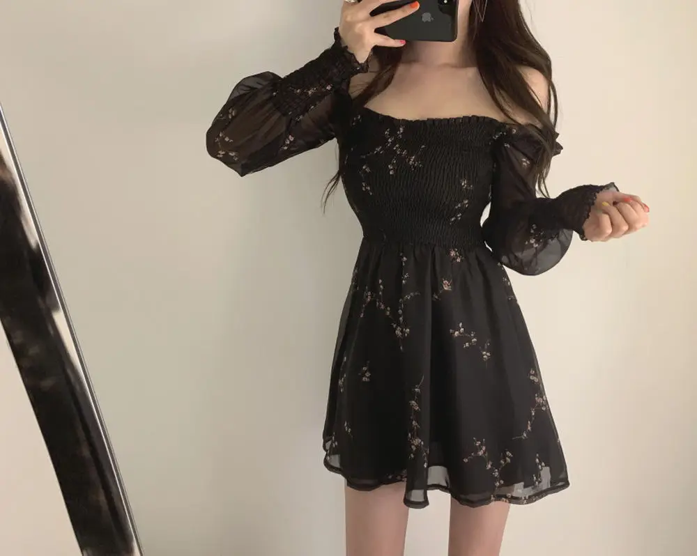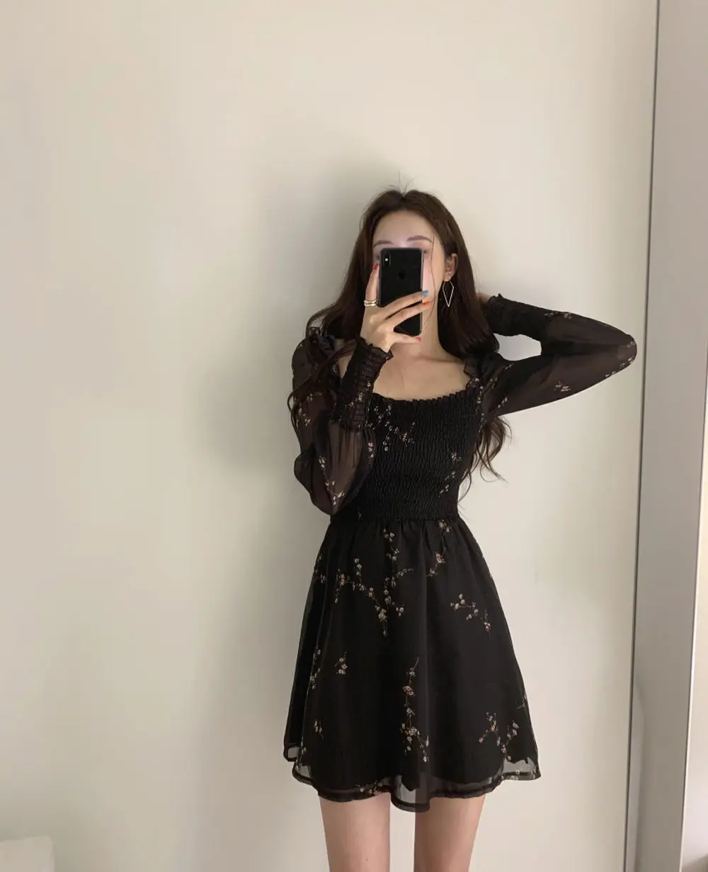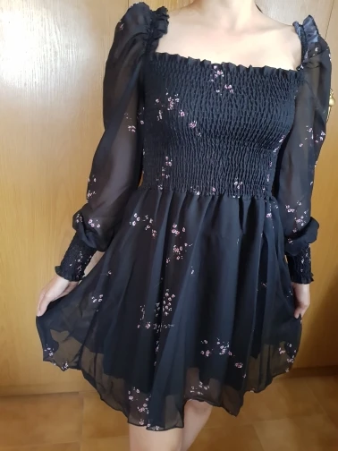 Vestido preto manga longa