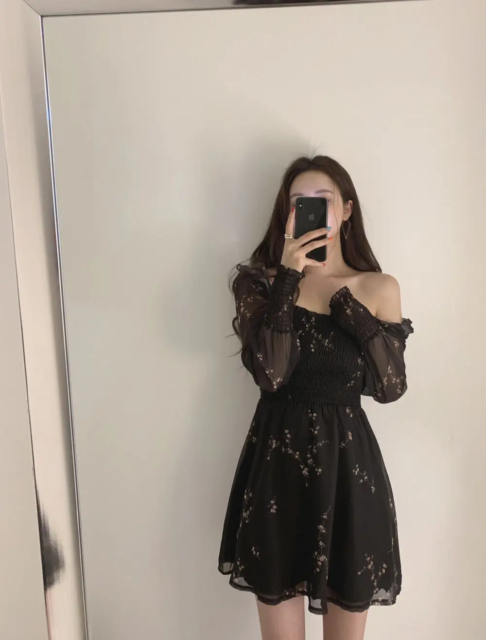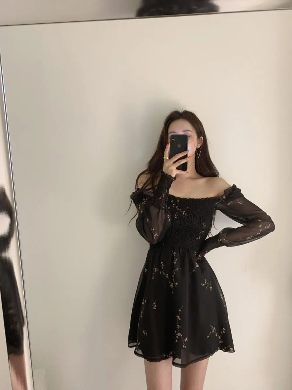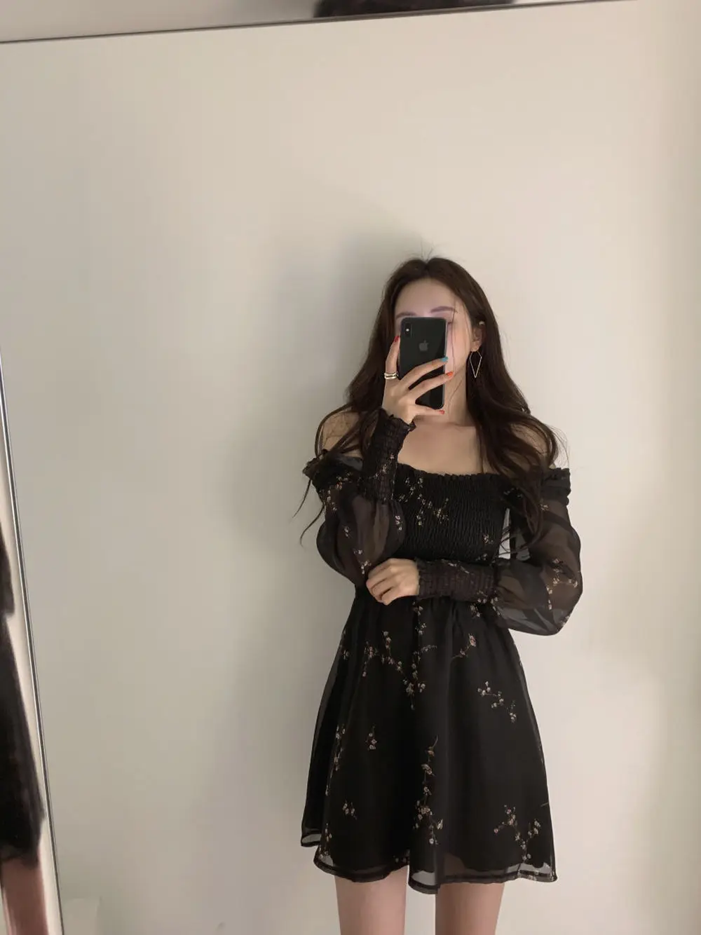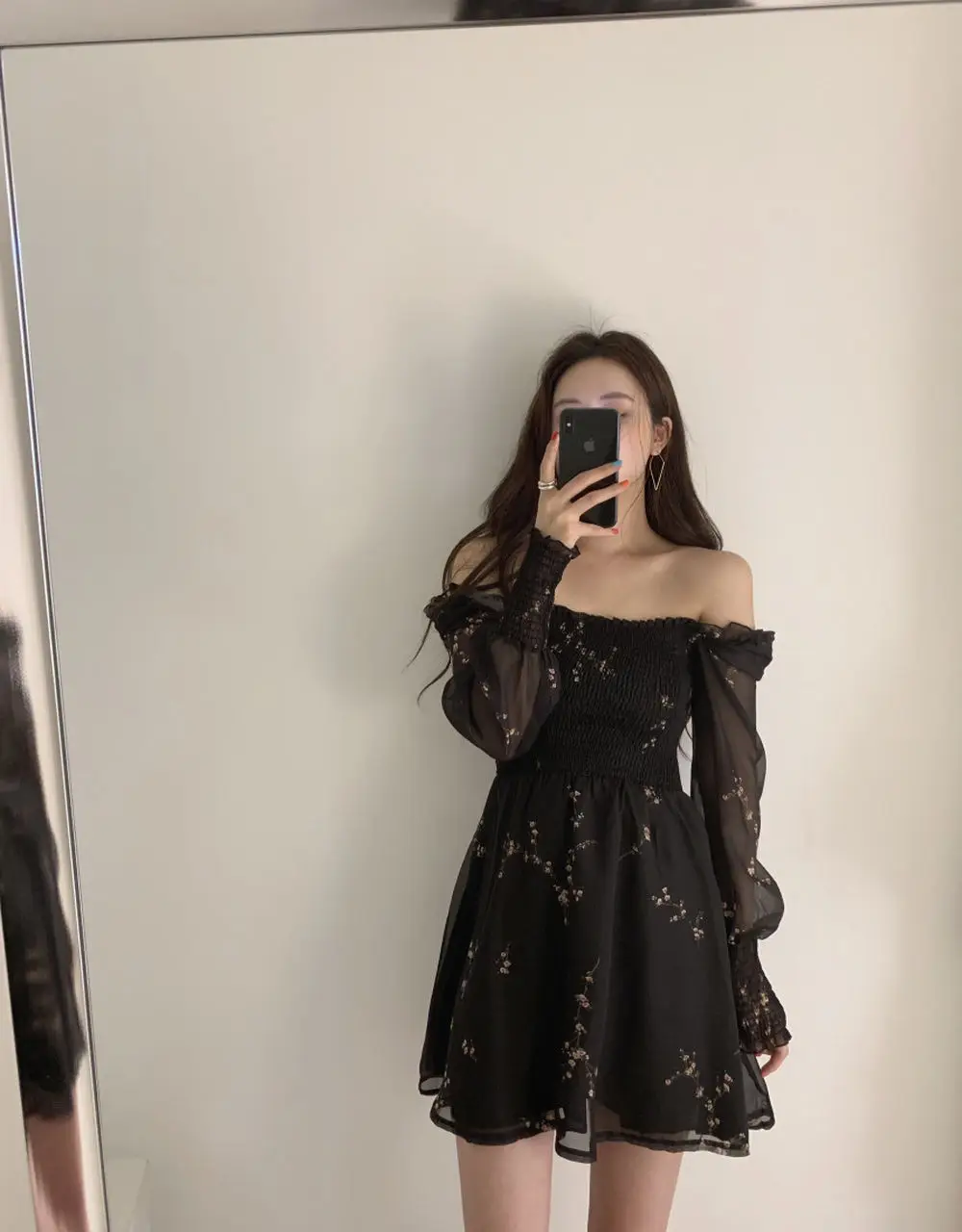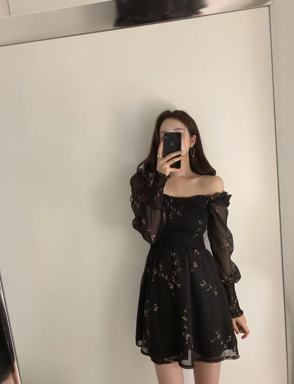 Vestido preto manga longa